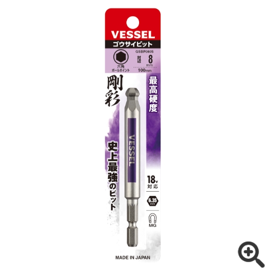 日本VESSEL威威 單頭鋼彩圓形頭內六角批頭GSBP0255