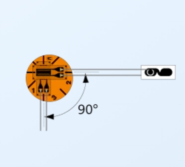 3線式時的0°: 紅色, 90°: 黃色,45°: 藍色的條紋。各種顏色均表示為S。
